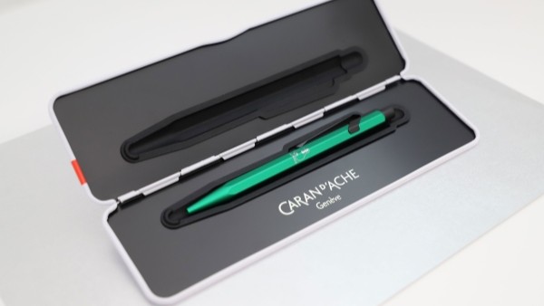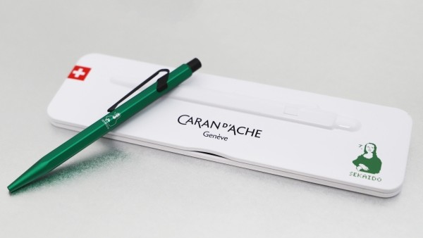 1915年、鉛筆工場としてスタートしたカランダッシュ。以来100年以上にわたって、スイス・ジュネーブの自社工場で常に革新的な筆記具・画材を生産し、そのモダンなデザインと高品質が両立したアイテムは、世界中で愛され続けていますが、この度、ロングセラーボールペンの「849」シリーズをコーポレートカラーのグリーンをあしらい、ワンポイントにドットモナリザをプリントした限定オリジナルボールペンをつくりました。高級感ありながら遊び心のある一品です。ギフトにも最適です。