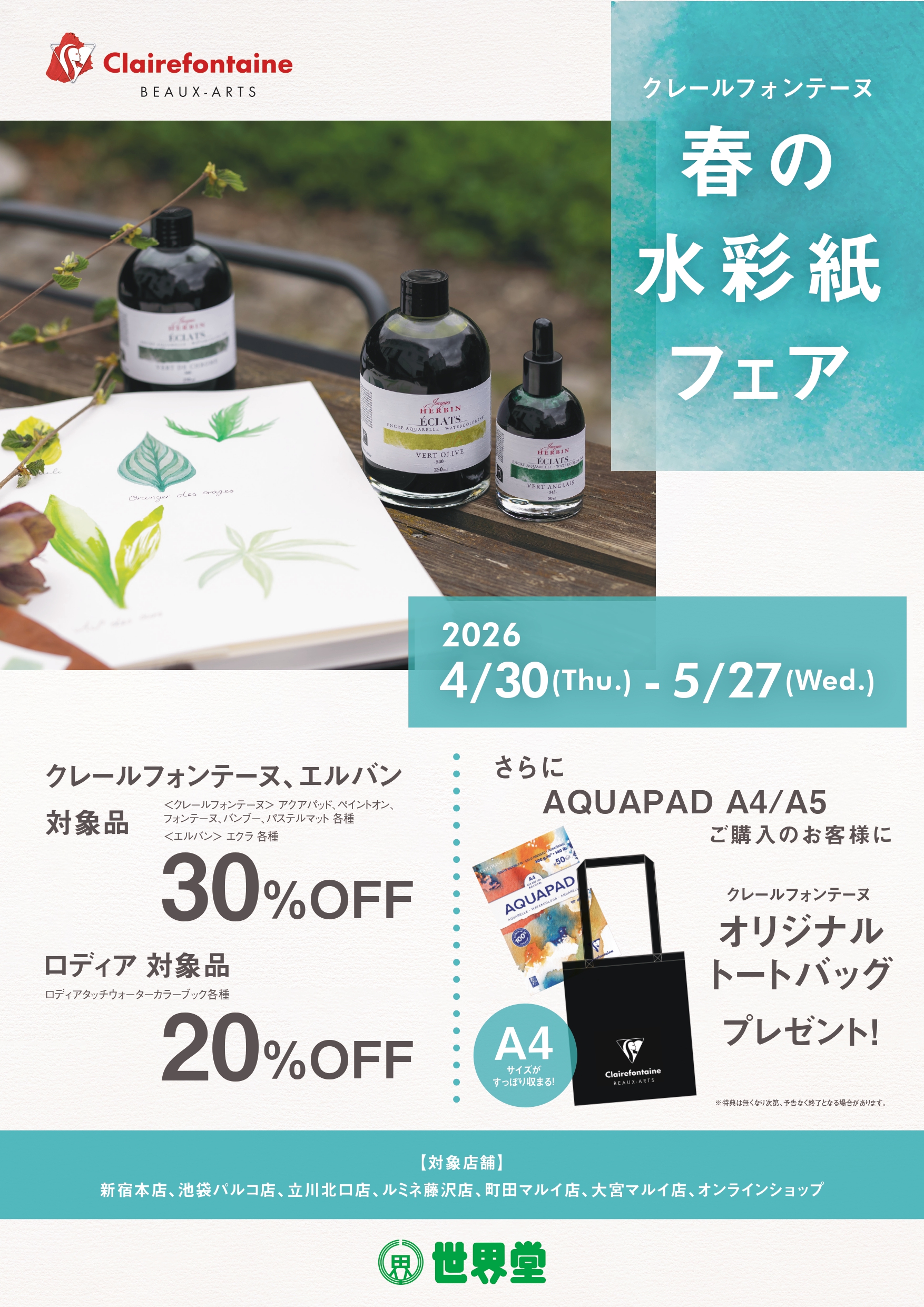 【予告】「クレールフォンテーヌ春の水彩紙フェア」
