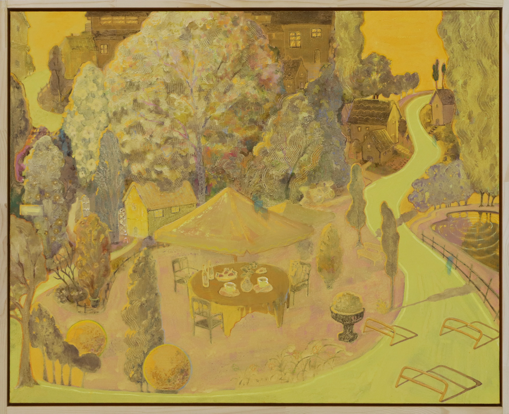 【 Comment 】 日常の景色の中に広がる模様を描きました。和の配色、ぴりっときいた黒い線。