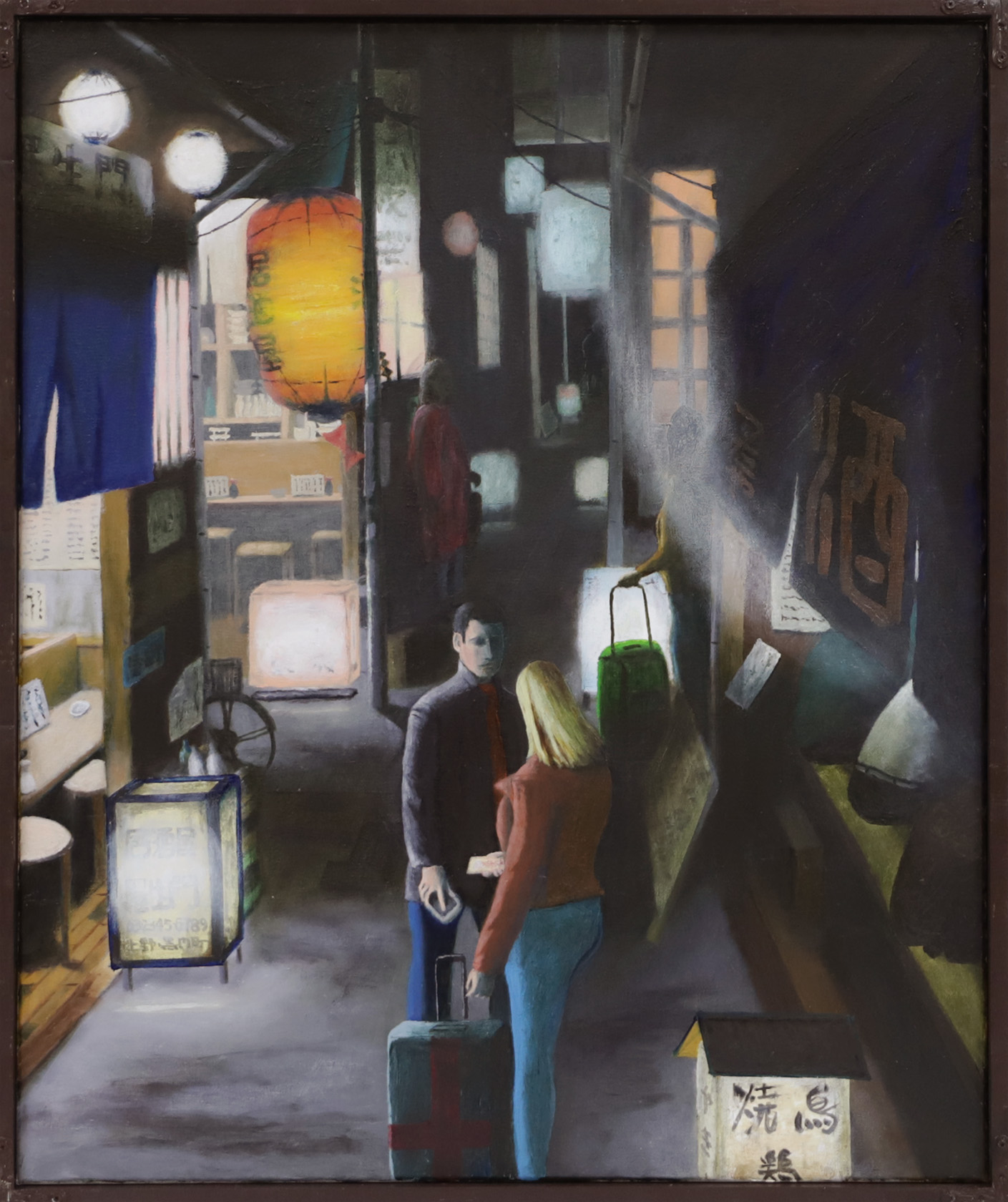 暗い空間の中の人物に展示環境の照明が差し込む形で表現しています。